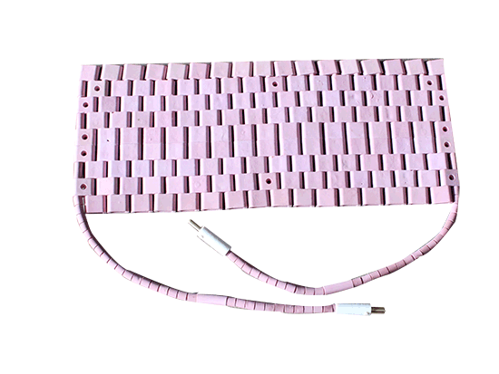 LCD型履帶式陶瓷電加熱器 LCD型履帶式陶瓷電加熱器是采用強度高,熱輻射性能好的氧化鋁陶瓷元件作絕緣材料,用優(yōu)質(zhì)鎳鉻絲纜作發(fā)熱體,穿接好的加熱器可以是矩形或三角形。鎳鉻絲纜與導(dǎo)線采用新工藝焊接,焊接的接頭全部埋入陶瓷元件內(nèi)絕緣可靠,陶瓷加熱器與控制設(shè)備配套即成為完整的熱處理系統(tǒng),它們的連接采用專用接插件,并可根據(jù)工件與控制設(shè)備的距離配置接長導(dǎo)線。長度尺寸可以靈活改變制作的履帶式陶瓷加熱器,應(yīng)視工件的幾何形狀、壁厚及熱處理工藝選擇相應(yīng)的規(guī)格、下表僅列部分規(guī)格。